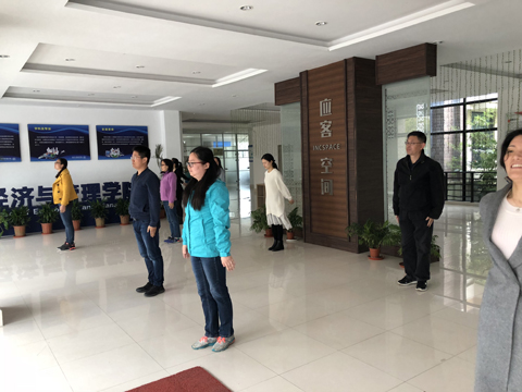 自本学期开始,每天的“健康工间操”得到了学院广大教工的热烈欢迎和积极参与,学院每位参与到活动中的老师纷纷表示受益颇多。老师们在活动中相互学习,相互交流,在增进同事之间感情的同时,也极大的增加了学院教职工的凝聚力。相信在广大教职工的支持和参与下,“健康工间操”活动一定会得到延续和发展。(图/文:陈文然)