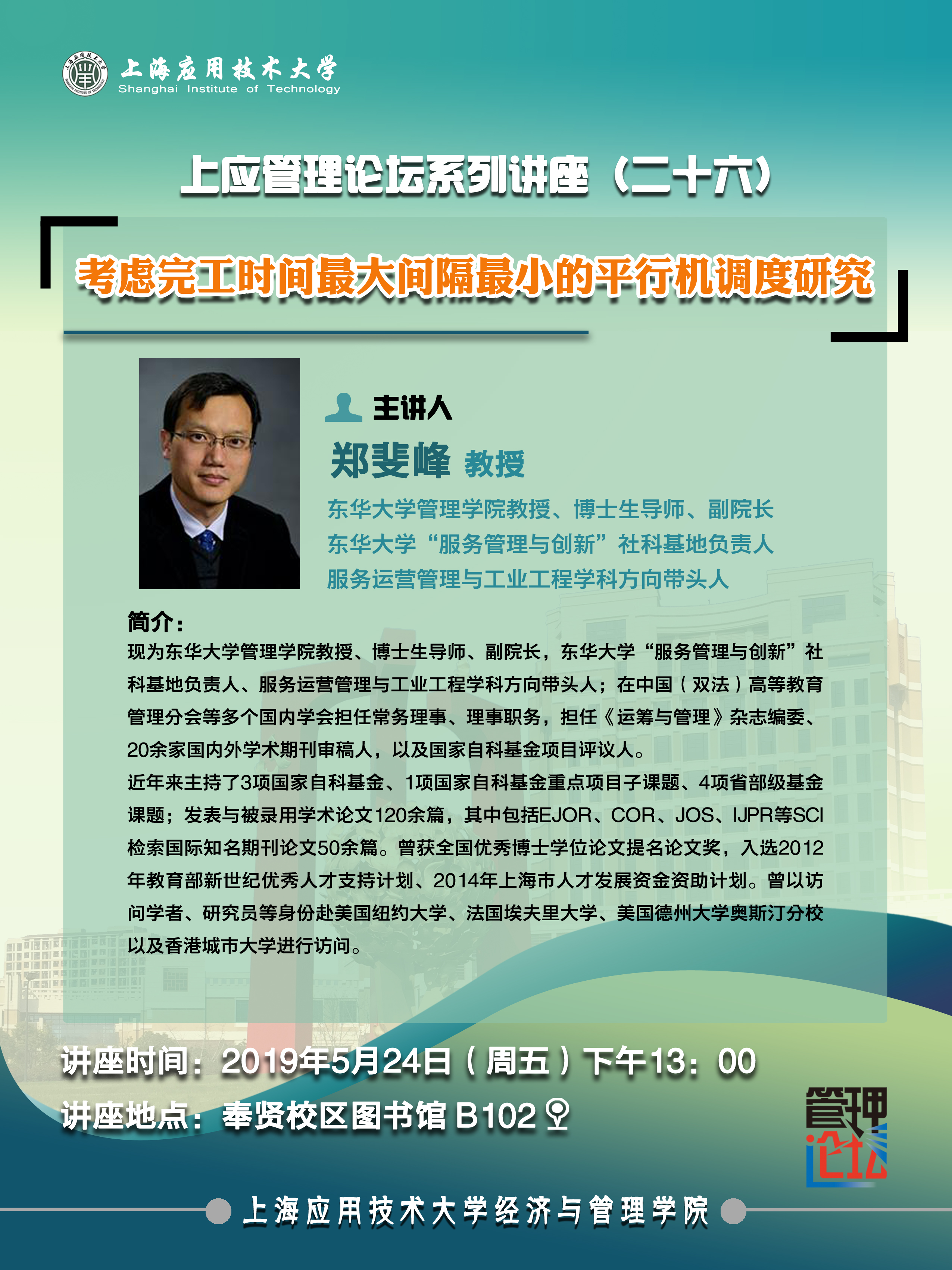 郑斐峰:考虑完工时间最大间隔最小的平行机调度研究