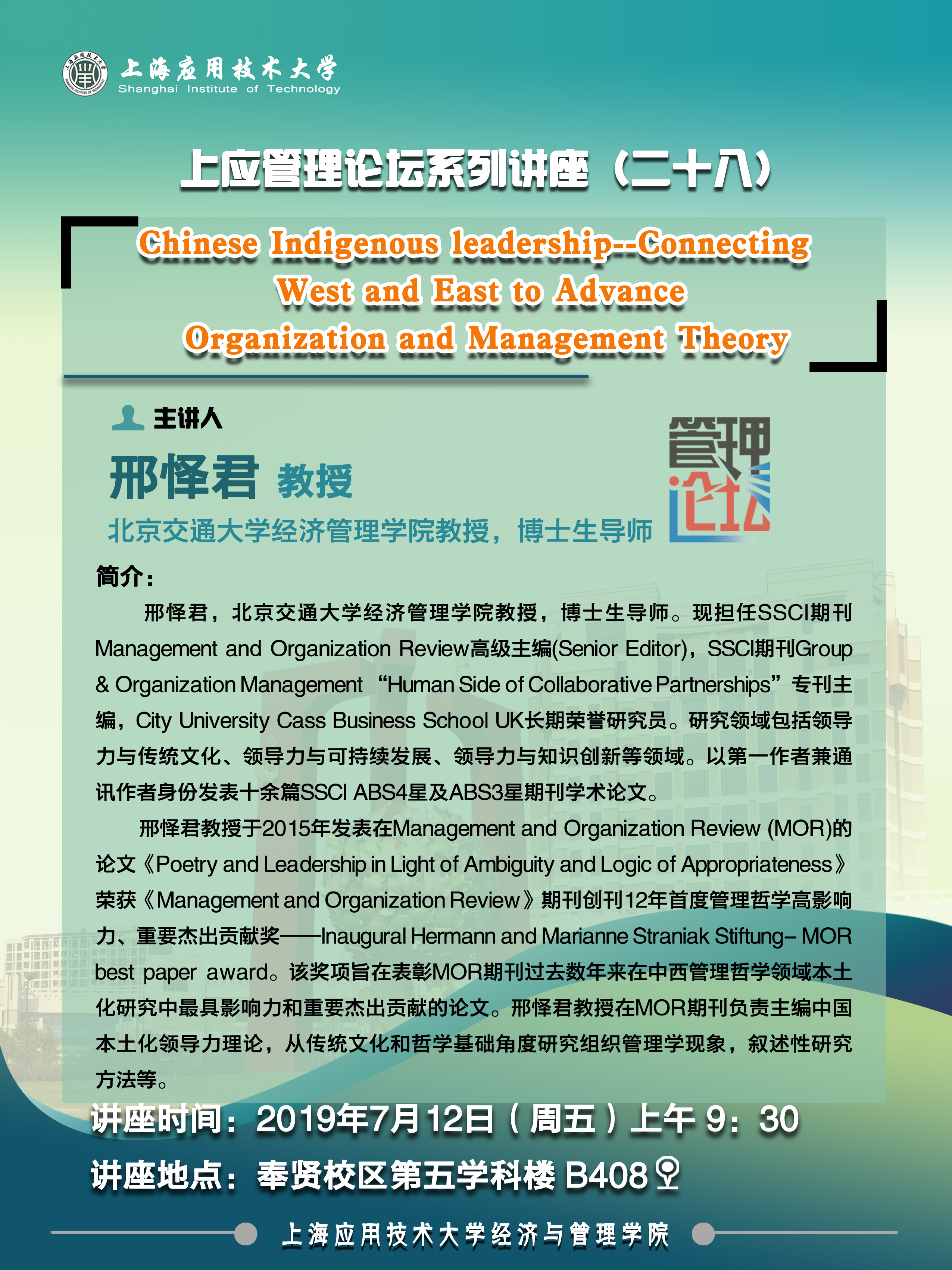 邢怿君:Chinese Indigenous leadership--Connecting West and East to Advance Organization and Management Theory