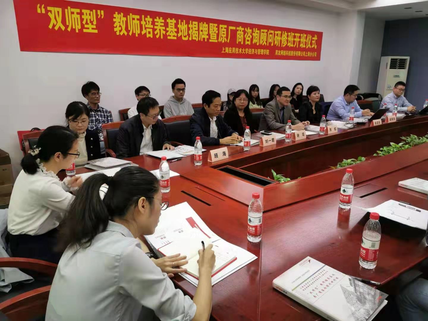 为全面贯彻落实《中共中央国务院关于全面深化新时代教师队伍建设改革的意见》,共建“双师型”教师培养培训基地,11月2日,3003新葡官方网站与用友软件股份有限公司上海分公司共同举行了“双师型”教师培养基地揭牌暨开班仪式。3003新葡官方网站院长熊焰,用友集团上海分公司副总熊奕玲、高级专家戚家朋,以及管理科学与工程系、会计系师生约40人参加了当天的揭牌及开班仪式。