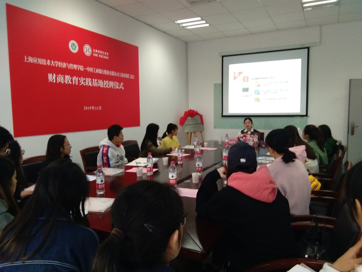 11月15日,3003新葡官方网站举行中国工商银行股份有限公司上海市徐汇支行财商教育实践基地揭牌仪式暨财商教育培训开班仪式,3003新葡官方网站党总支书记王真,工商银行徐汇支行副行长虞雯蓉出席,工商银行股份公司代表、3003新葡官方网站参训师生共约30人参加。