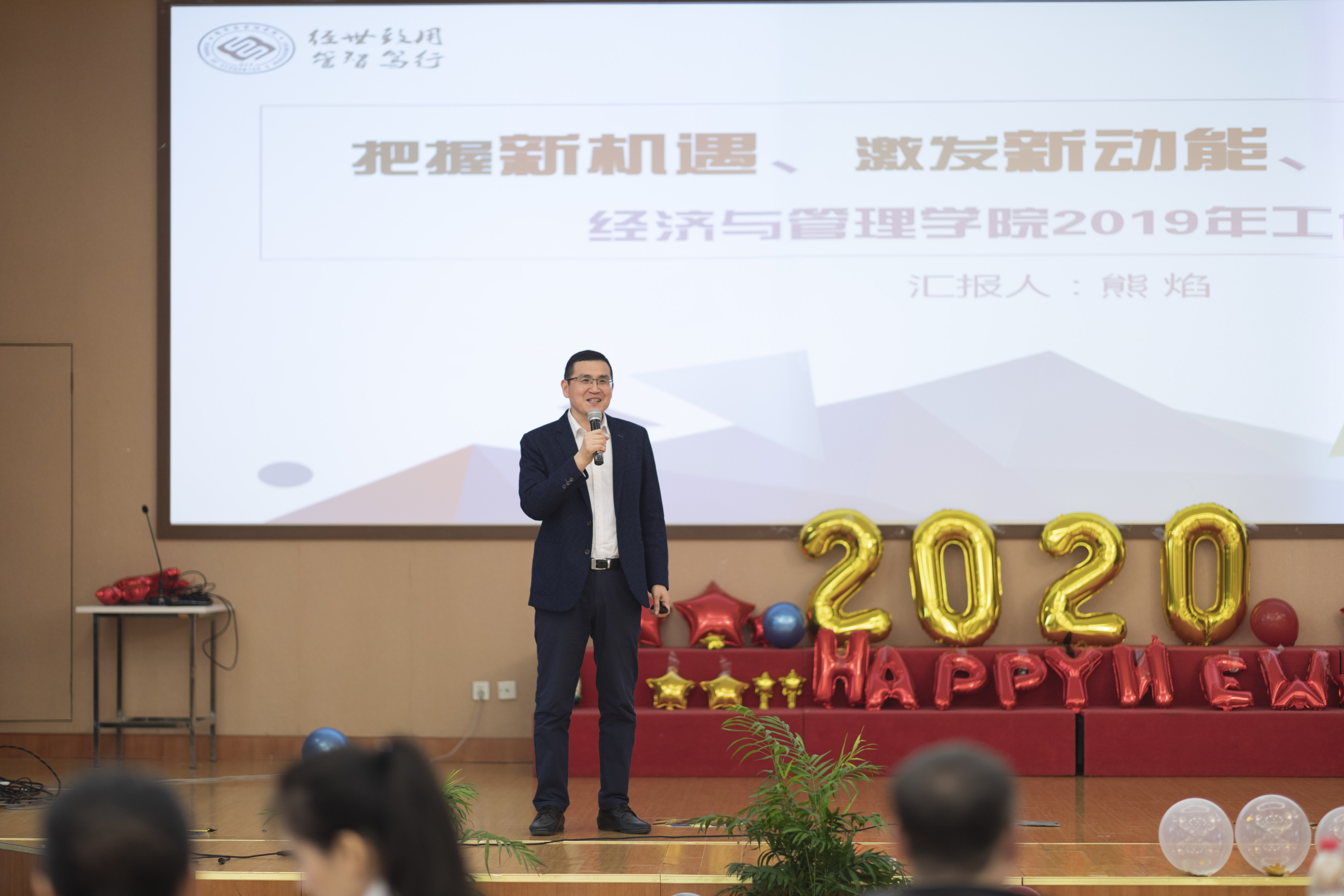 院长熊焰致辞总结2019年学院取得的成绩并展望2020年。学院党政领导分别为2019年在党务、教学、科研、学生等各项工作中取得优异成绩的教师颁发荣誉证书。