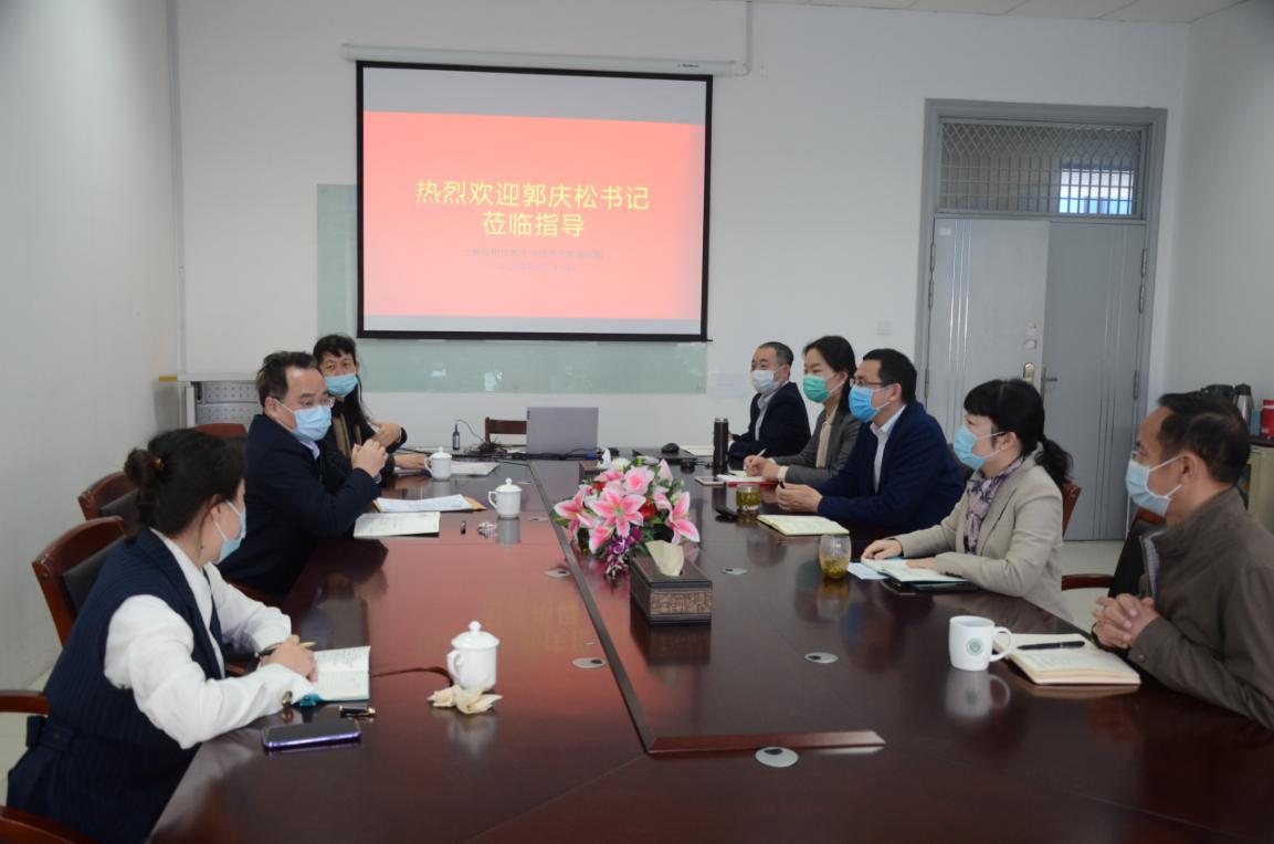 4月26日,校党委书记郭庆松一行赴我院调研指导工作,党办主任及学院党政班子全体成员出席会议。