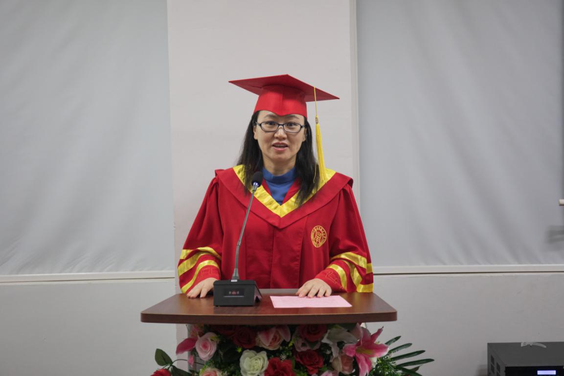 王瑛代表学校向全体2020届市场营销(中加合作)专业毕业生克服疫情的不利影响顺利毕业表示祝贺,希望同学们志存高远、脚踏实地、宽容自信,在人类命运共同体的大背景下,继续开阔国际视野,以更加深刻的爱国情怀勇担社会责任、书写奋进答卷!
