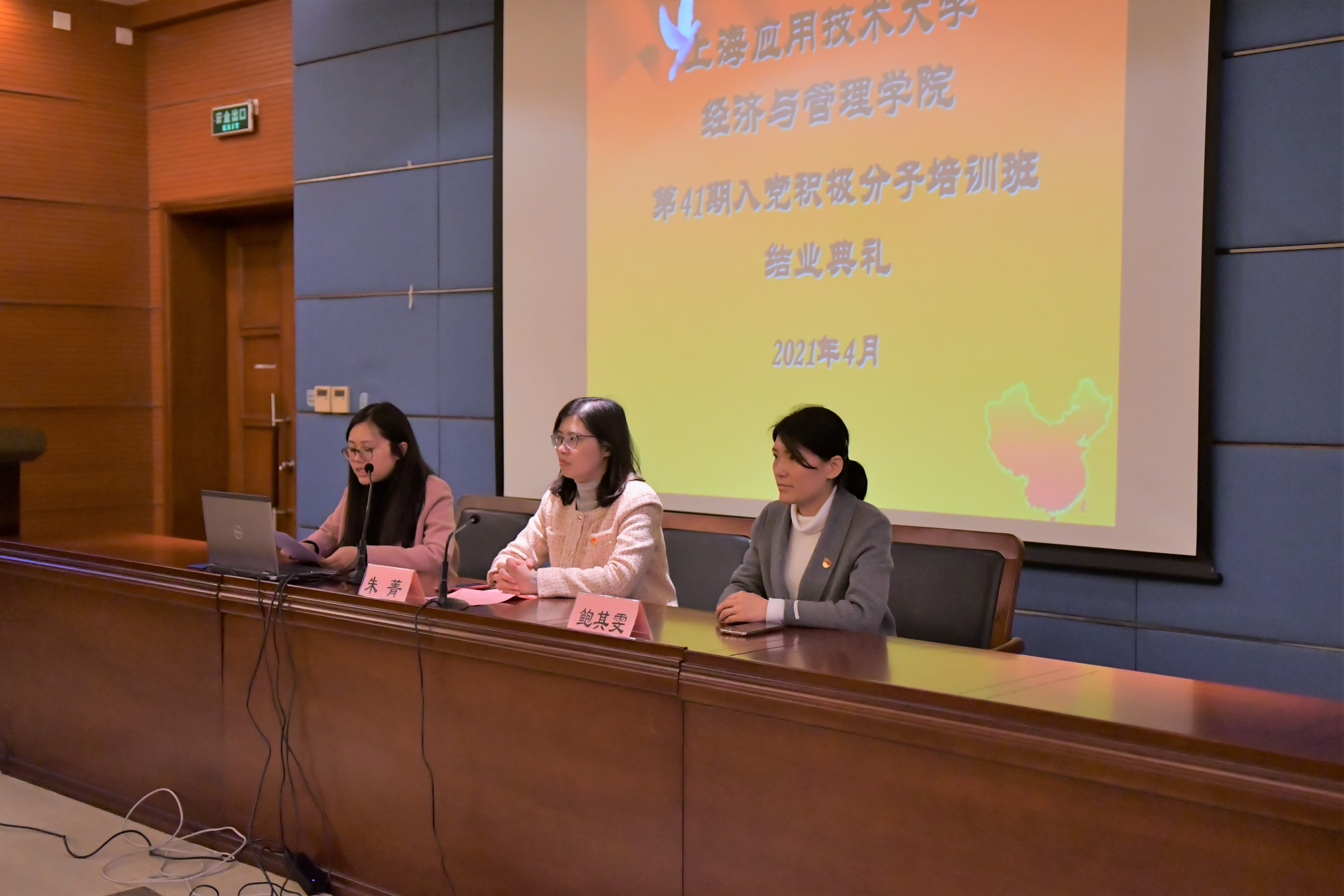 4月9日,3003新葡官方网站第41期入党积极分子培训班结业典礼在行政楼117报告厅举行,3003新葡官方网站党委副书记、副院长朱菁,研究生第一党支部书记鲍其雯,全体培训班成员出席结业典礼,会议由专职组织员顾慧主持。