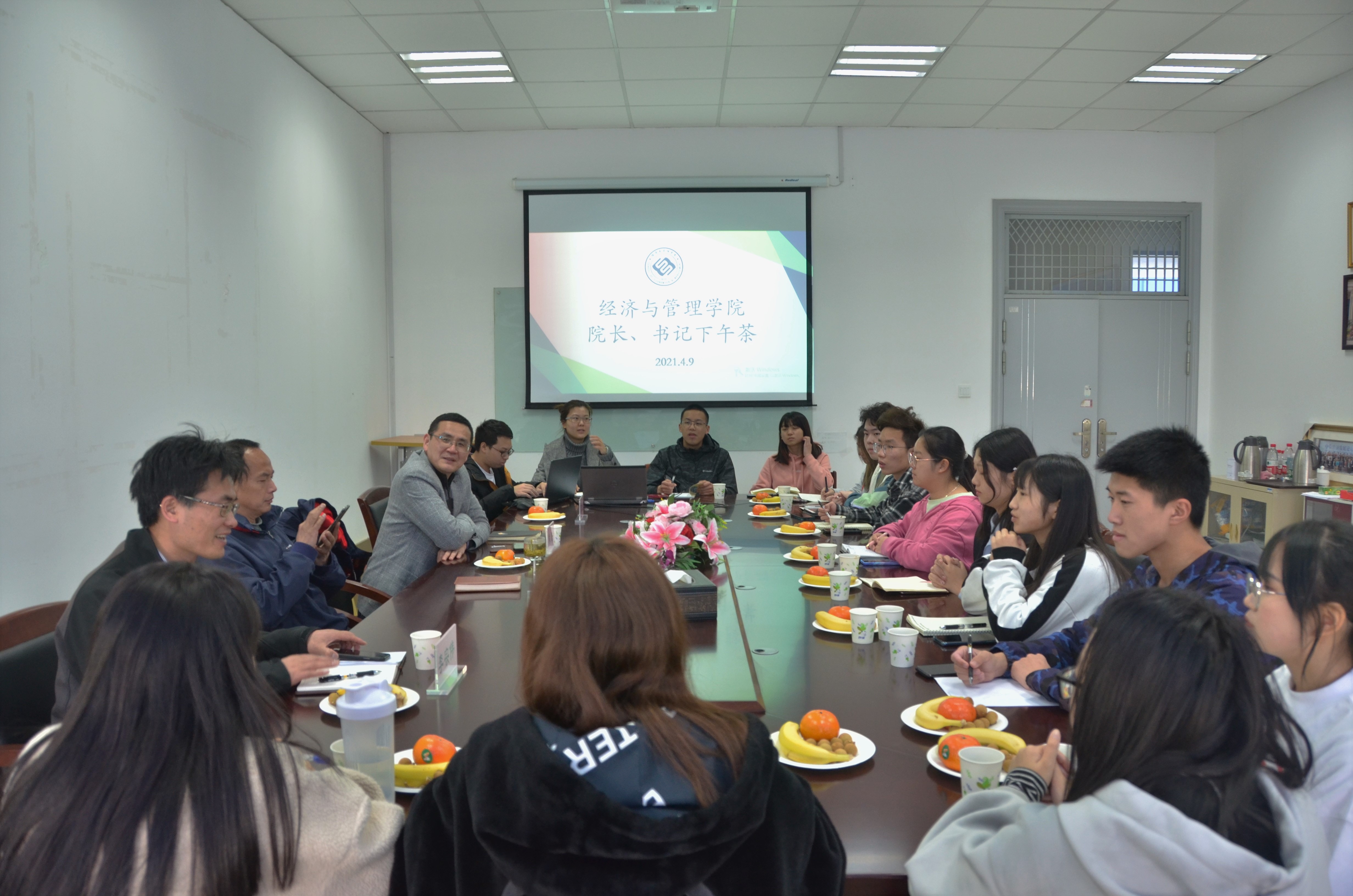 2021年4月9日,3003新葡官方网站首期“书记院长下午茶”活动于第五学科楼A221顺利举行。3003新葡官方网站院长熊焰教授,副院长张金福教授,工商管理系主任张义老师,院科学与工程系主任李宗伟老师担任首期“院长书记下午茶”嘉宾,主要围绕专业未来发展与实际运用、考研、留学等同学们提出的问题,一一给予答疑解惑,近20名学生代表报名参加了本次活动。