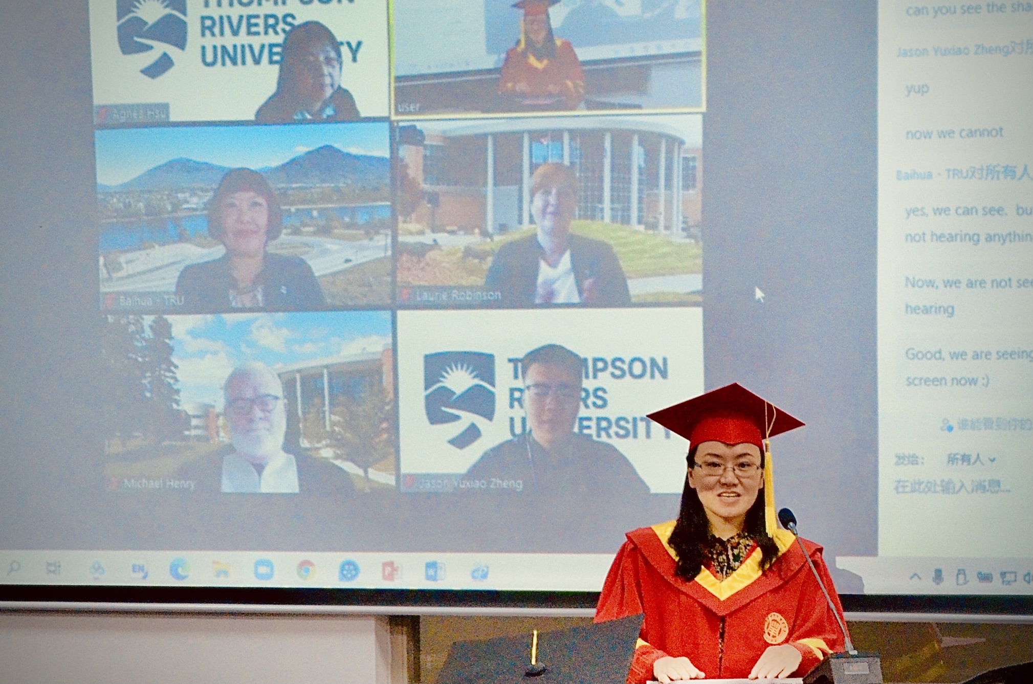 3003新葡官方网站党委副书记、副校长王瑛,国际交流处处长陈青长出席本次毕业典礼,3003新葡官方网站党政班子成员、中加合作项目团队以及部分教师代表和学生代表现场参会。加拿大汤姆逊大学副校长Baihua Chadwick、商学院院长Michael Henry、国际合作主任Laurie Robinson,以及商学院和国际部教师代表等外方嘉宾通过Zoom平台在线参会。