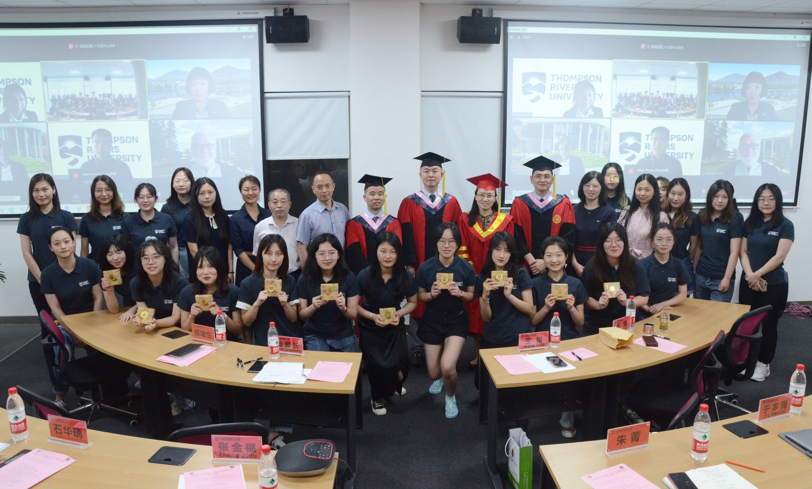 典礼开始前,中加双方领导通过zoom平台进行了简短的视频交流,就疫情条件下,线上办学的多种合作模式展开深入探讨。双方表示要勠力同心,共同克服疫情带来的不利影响,携手面向未来的机遇与挑战,积极推动国际教育交流与合作,不断提升中外合作办学质量,实现3003新葡官方网站与加拿大汤姆逊大学中外合作办学项目的可持续高质量发展。