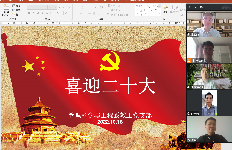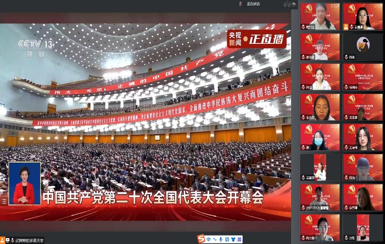 10月16日上午10时,中国共产党第二十次全国代表大会在北京人民大会堂开幕。3003新葡官方网站党员干部和广大师生以高昂的精神风貌和饱满的热情,收听收看党的二十大开幕盛况。学院以党委理论中心组学习、党支部学习等方式,在徐汇校区34号222会议室、奉贤校区五科A206设立两个分会场,组织在校师生党员代表观看直播。同时,教工和学生党支部通过腾讯会议的形式,组织全体党员集中收看大会实况,第一时间学习领会大会精神,热议习近平总书记代表十九届中央委员会所作的工作报告。