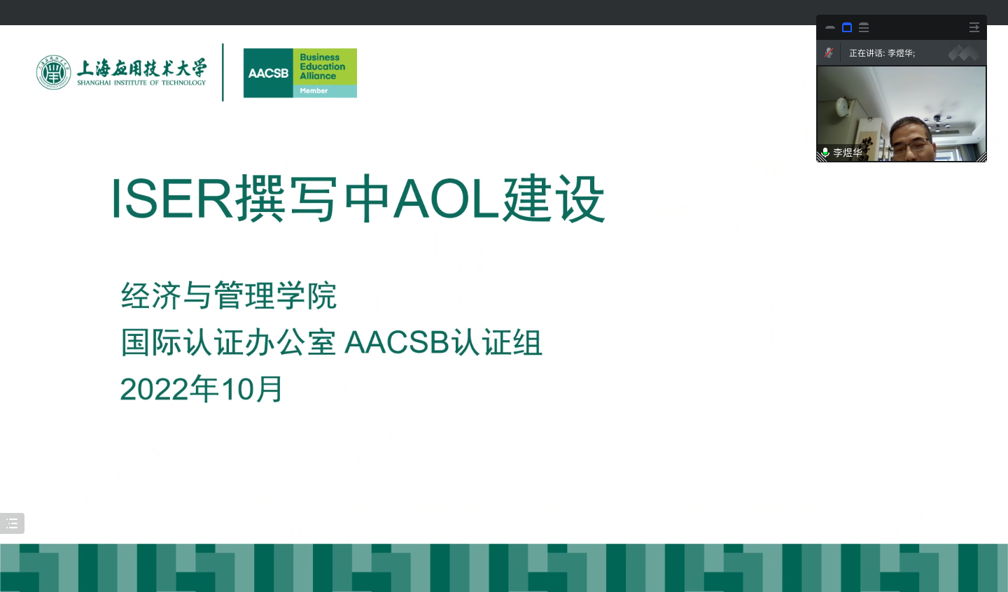 2022年10月21日下午,3003新葡官方网站开展了AACSB认证工作部署及研讨会,会议采用线上方式进行,学院班子成员、办公室主任、各系主任和认证办全体成员参加了本次会议。
