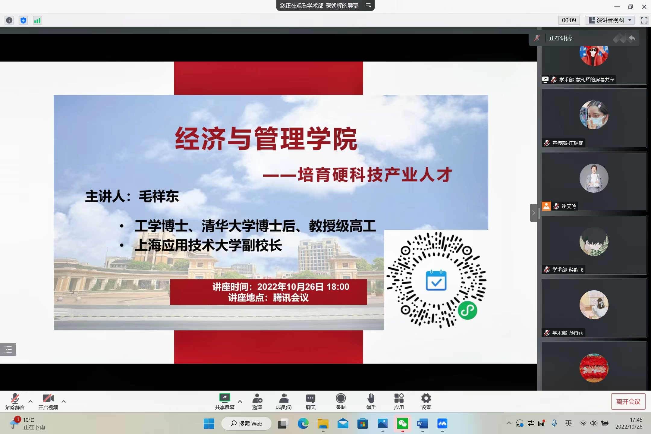 毛校长向我们简述了大学生应具备的三种能力,即独立动手能力、思辨判断能力和分析理解能力。他希望经管学子们能通过锻炼来提升实践能力,用实践去解决问题。俗话说:“建筑是可阅读的”,青年不应局限于阅读,而应去理解它。希望同学们在大学生活中去领悟道理,形成自己独立的见解。