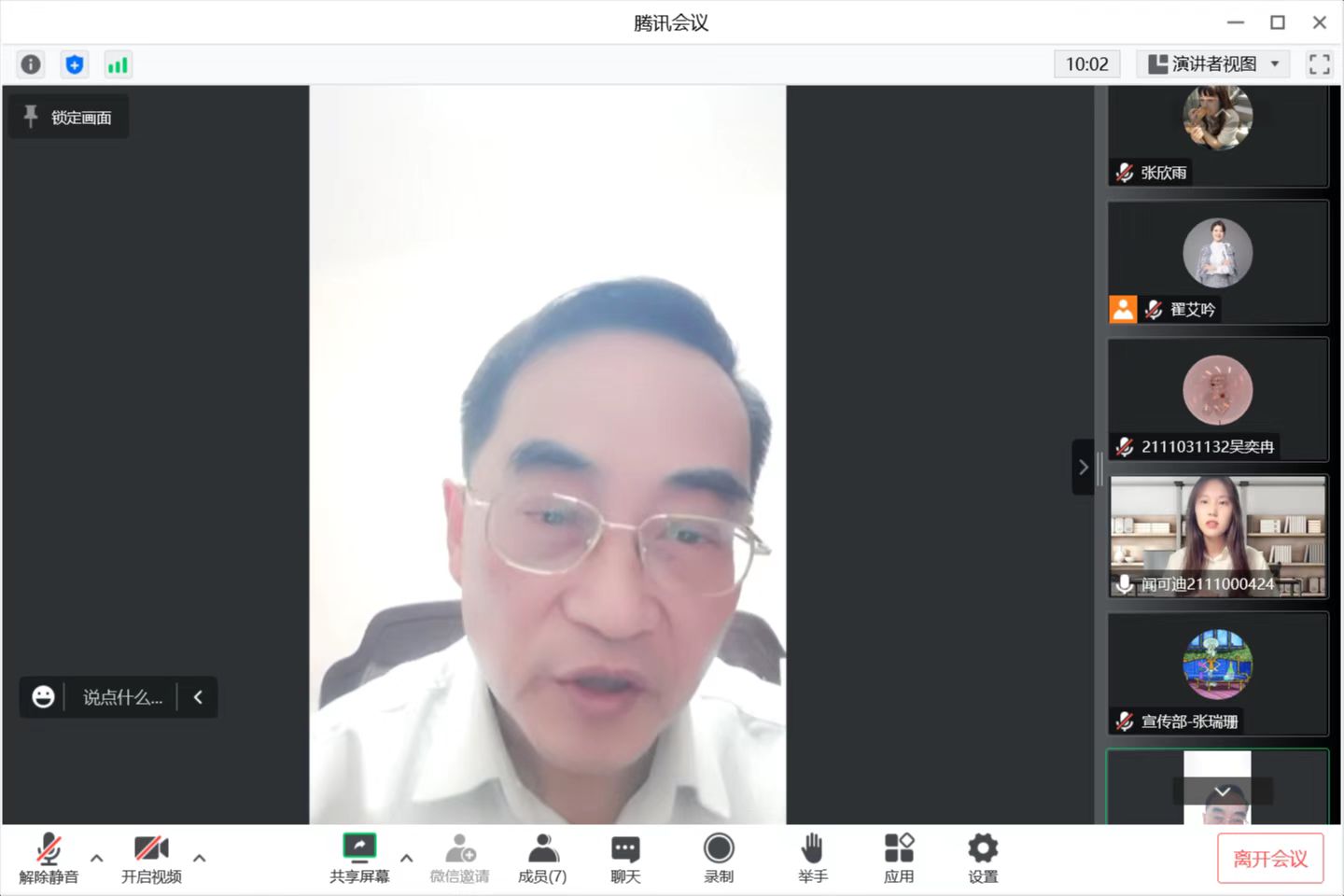 3003新葡官方网站退休党建组织员许岳兰老师值此之际受邀参与“学习二十大”特别团日活动,寄语青年团员要感恩国家、感恩父母、感恩改革开放带来的繁荣富强。踏实肯干的对待学习和以后的工作,做服务社会,对社会有用的人才。学习贯彻党的二十大精神,是当前和今后一个时期的首要政治任务。“学习二十”系列活动的开展旨在提升经管学子们对党的认知,首先要从思想上入党即从思想上树立无产阶级世界观、人生观、价值观,树立全心全意为人民服务的信念,不惜牺牲一切,为实现共产主义而奋斗终身,并在实际行动中表现出来。