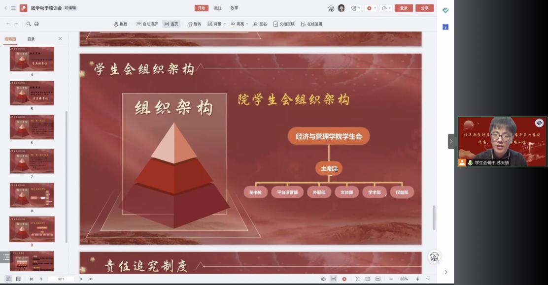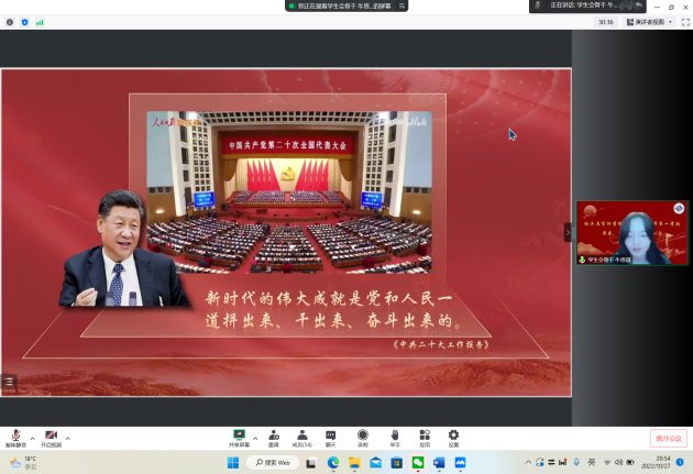 喜迎二十大,奋进新征程。为鼓励同学们以实干强国兴邦,提高思想积极性,3003新葡官方网站学生会于2022年10月27日晚召开秋季培训会。