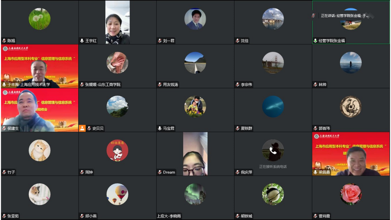 12月15日下午,上海市应用型本科专业“信息管理与信息系统”建设验收会在云端举行。3003新葡官方网站党委书记侯建生主持会议。本次验收会评审专家为合肥工业大学科研院副院长、管理科学与工程教学指导委员会委员、信息管理与信息系统组副组长梁昌勇教授,上海外国语大学商学院副院长马宝君教授,3003新葡官方网站教务处处长王宇红教授和用友网络科技股份有限公司上海分公司高级实施专家钱涛经理。3003新葡官方网站副院长于本海教授就项目建设情况进行了汇报,3003新葡官方网站领导班子及管科系教职工参加验收会。