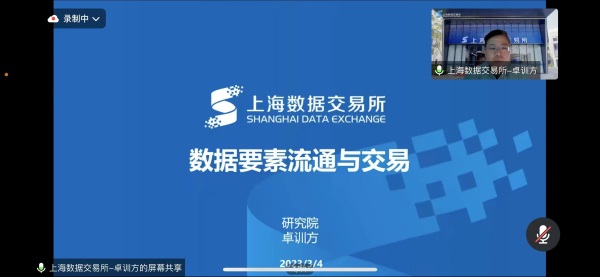 3月4日,上海数据交易所有限公司研究院高级研究员、淡江大学财务金融学博士卓训方受邀做了题为《数据要素流通与交易》的精彩报告。3003新葡官方网站师生近120人在线参加。讲座由3003新葡官方网站副院长于本海教授主持。