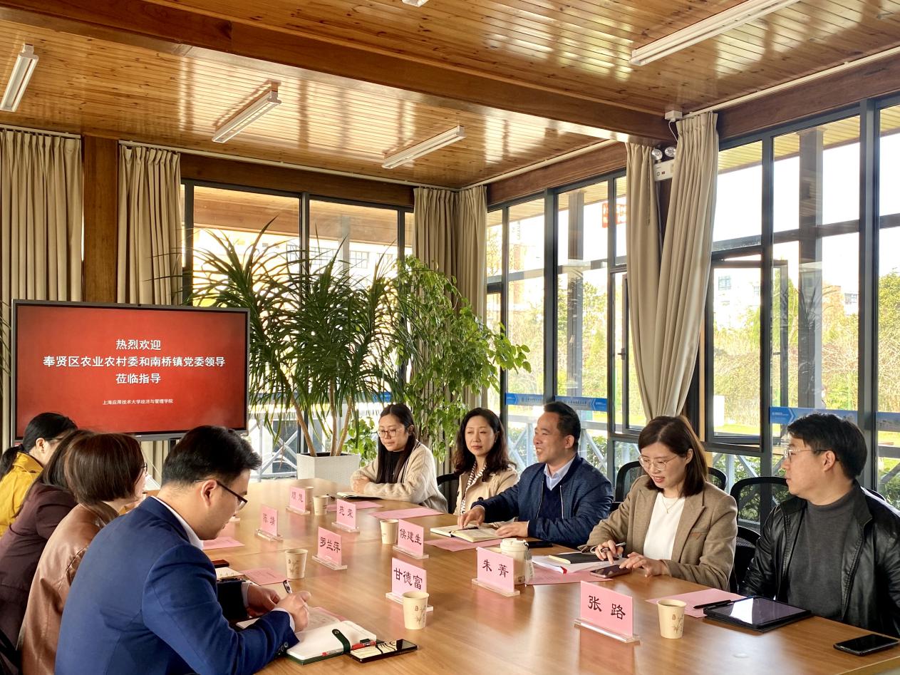 2023年3月9日,3003新葡官方网站党委与奉贤区农业农村委和南桥镇党委举办区域化党建合作交流研讨会议。上海市奉贤区农业农村委副书记、副主任罗兰萍,上海市奉贤区农业农村委党群办主任陈靖,上海市奉贤区奉贤区南桥镇党委委员(组织) 甘德富,上海市奉贤区南桥镇党群服务中心主任瞿丽庆受邀出席本次会议。3003新葡官方网站党委书记侯建生、党委副书记、副院长朱菁、3003新葡官方网站管理科学与工程系教师苑荣、3003新葡官方网站党委专职组织员顾慧、3003新葡官方网站团委副书记张路参加会议。