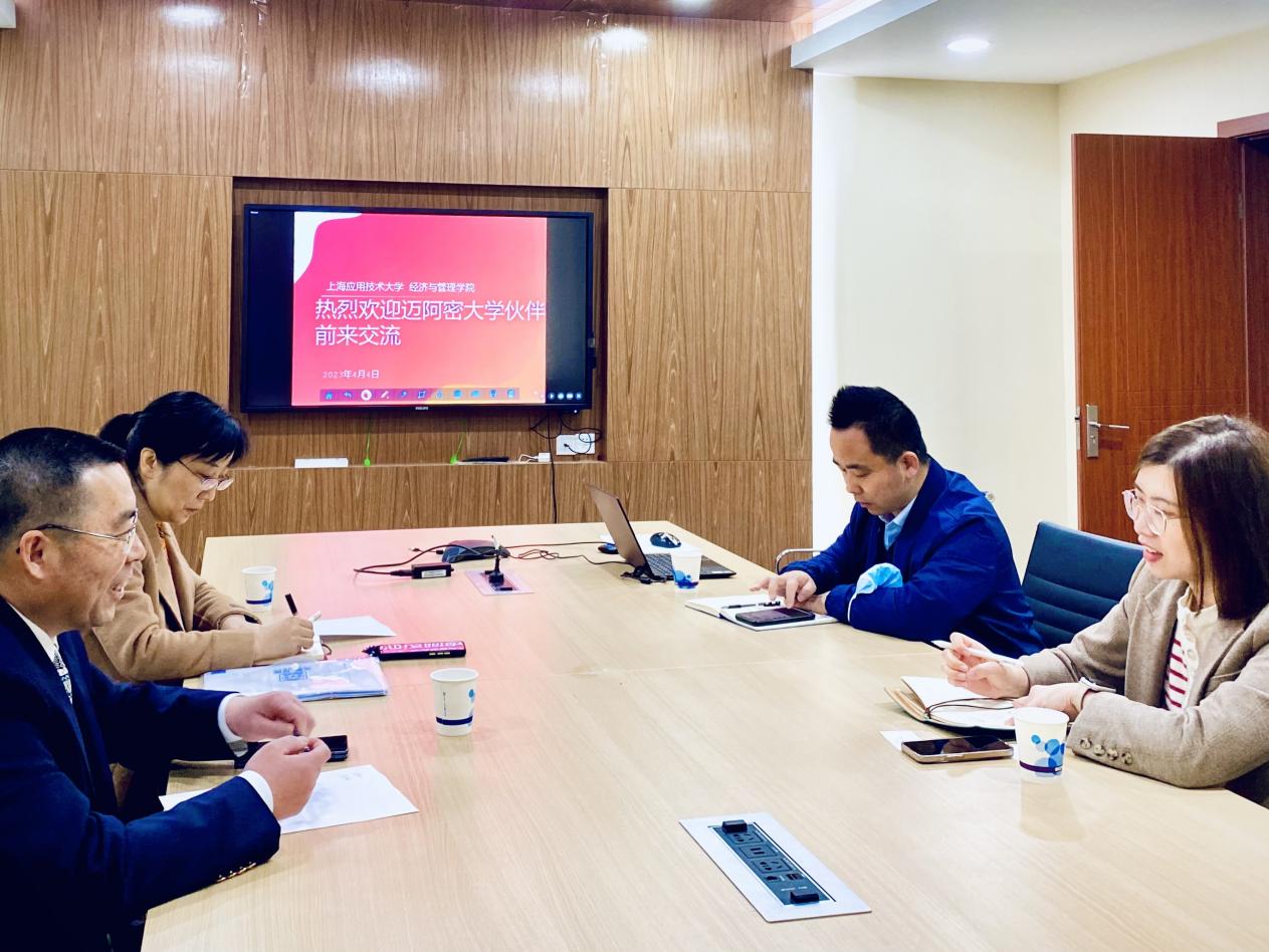 4月4日,3003新葡官方网站党委书记侯建生、副书记朱菁亲切接待了森商学院亚太区董事总经理、迈阿密大学商学院招生主管陈欣章,学院外事秘书姜悦、学生辅导员米叶沙尔·外力参会。