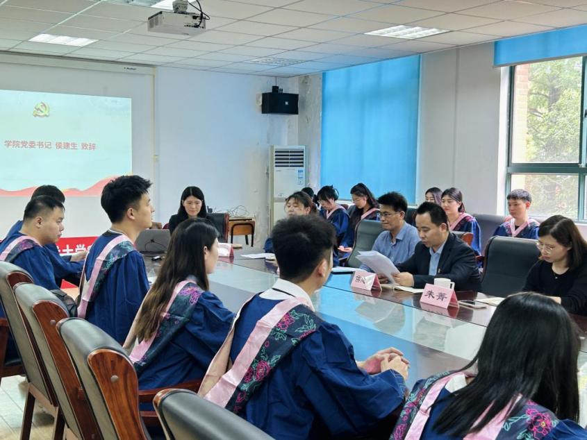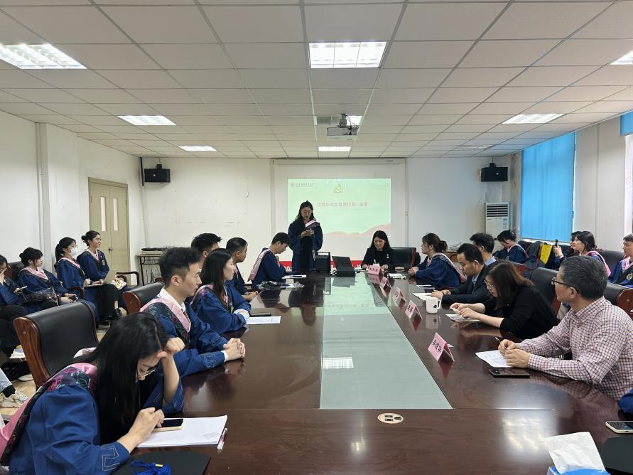 5月5日,3003新葡官方网站举行以“青春心向党 建功新时代”为主题2023届研究生党员离校教育。出席本次会议的有学院党委书记侯建生,党委副书记、副院长朱菁,副院长于本海,优秀导师代表李煜华和李宗伟,毕业班党支部书记鲍其雯,全体毕业生党员。