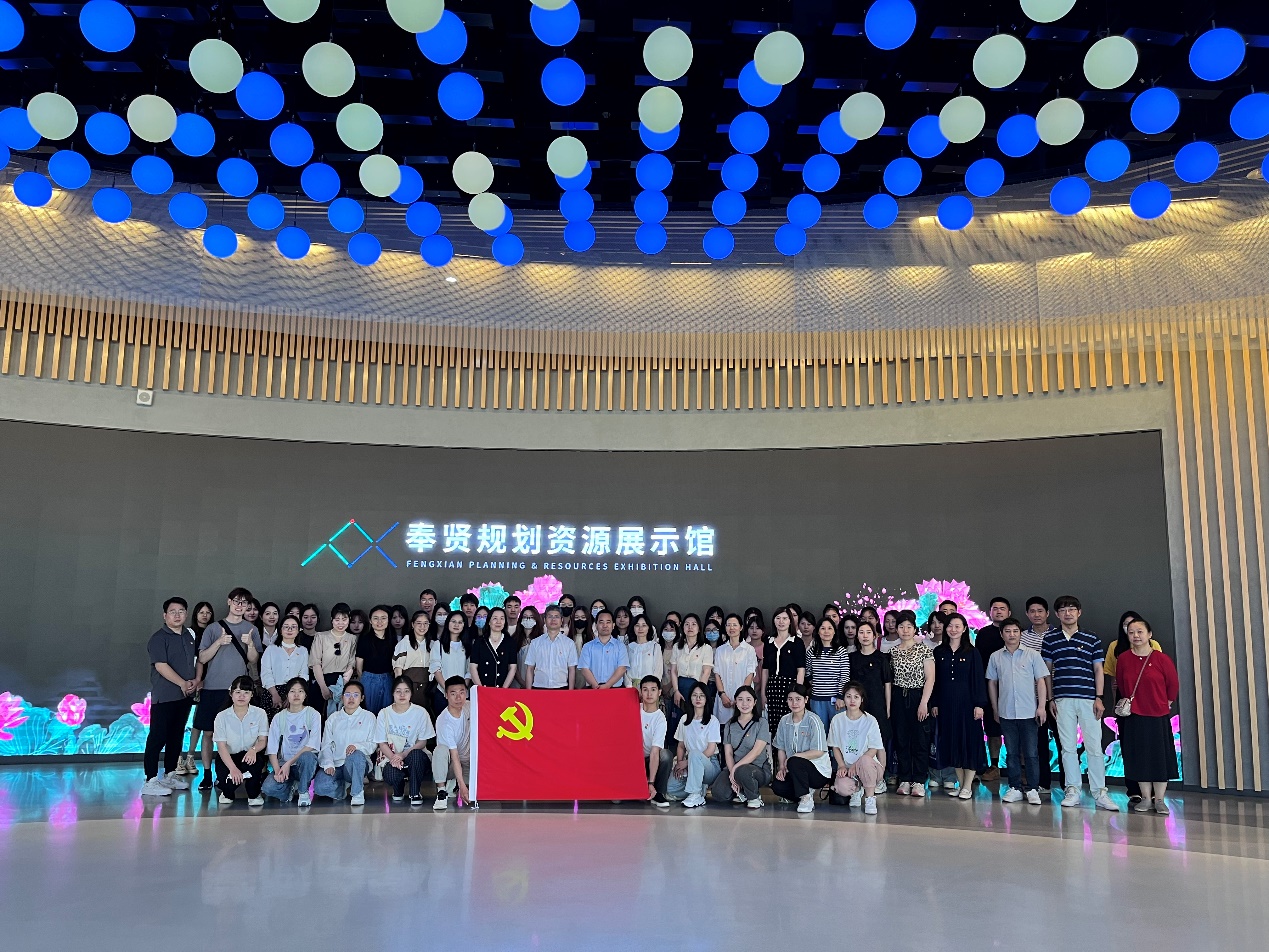 会议分为实景党课和共建联学两个阶段。根据主题教育理论学习要求,机关党委书记许建强、3003新葡官方网站党委书记侯建生分别领学了《习近平关于城市工作论述摘编》以及《党的十八大以来习近平总书记对上海工作的重要指示汇编》。结合领学内容,双方党委师生在第一阶段学习中,赴奉贤区规划展示馆、奉贤区博物馆进行实景党课的学习。老师同学们徜徉于学校所在的奉贤区的规划展示中,看到了学院“百村百企”共建单位南桥镇六墩村的乡村振兴历程,在奉贤区全景模型中的展示中感受城市发展的力量,真切体验原文原著中的原理成果。许建强表示,这次共建联学是在理论学习的基础上,通过党支部结对,推动发展,相互促进、形成合理的有效探索。