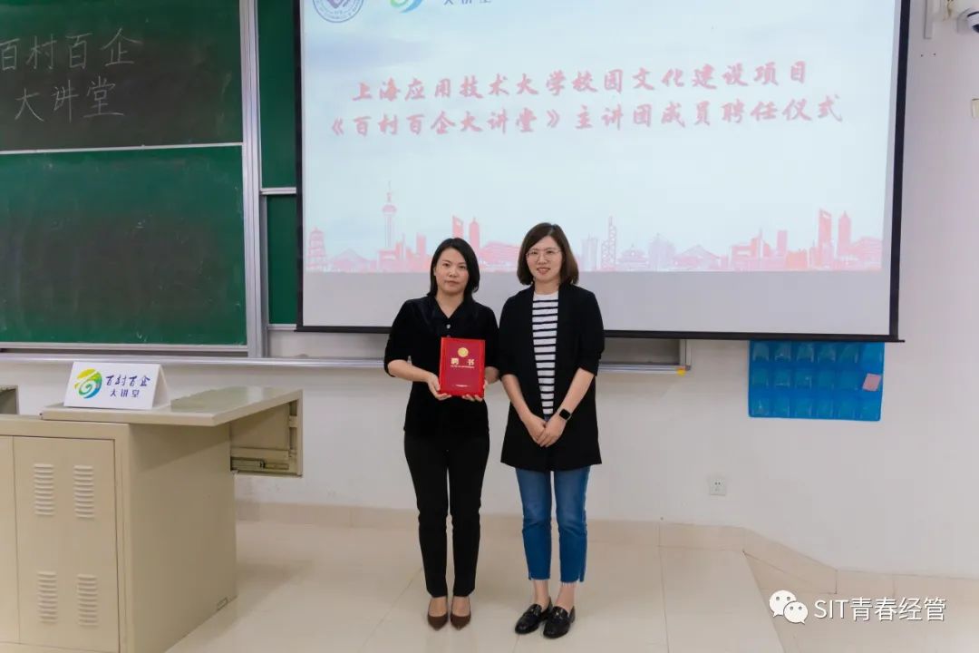 首先由朱菁为瞿东和徐丹萍颁发3003新葡官方网站校园文化建设项目《百村百企大讲堂》主讲团成员聘书。
