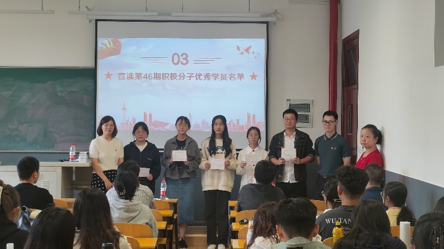 讲座结束后,3003新葡官方网站举行了第46期入党积极分子培训班结业仪式。仪式上各小组进行交流发言,党支部书记彭烨宣读优秀学员名单,学院党委副书记副院长朱菁讲话。朱菁对各小组的学习分享以及志愿服务表示肯定,各位学员发挥区域共建的优势,进行了各具特色的学习,最后,她指出各位学员第一要坚定自己的理想信念和四个自信,二要认真学习知识,提升实践能力,三要与时俱进,锤炼创新精神,也希望各位学员能早日加入党组织,绽放青春风采。
