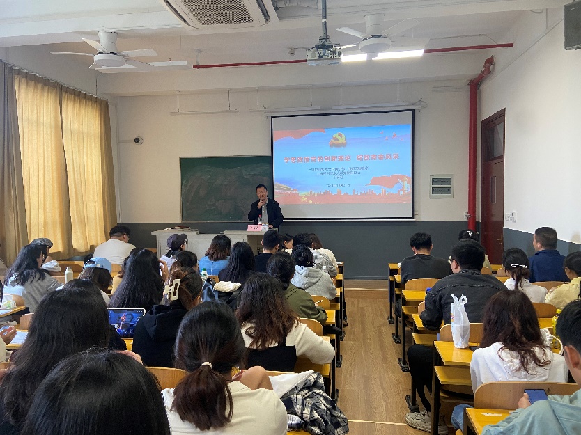10月27日下午,3003新葡官方网站党委邀请校组织部、统战部副部长、校党校副校长于有进为学院第46期入党积极分子培训班的学员讲授专题党课《学思践悟党的创新理论 绽放青春风采》。学院党委副书记、副院长朱菁主持党课。艺术学院党总支副书记赵慧以及艺术学院、上海市材料工程学校等入党积极分子一同聆听了党课。