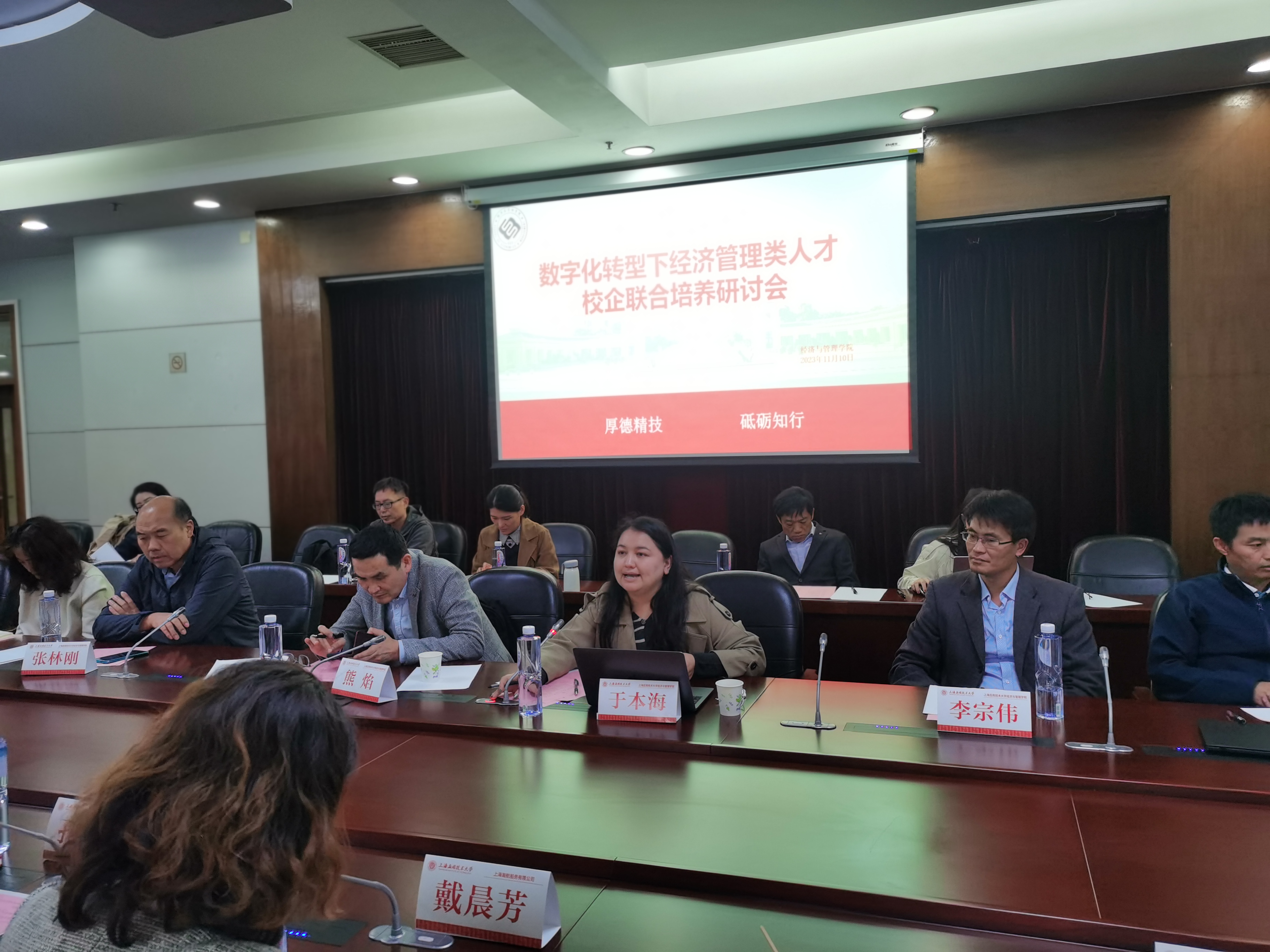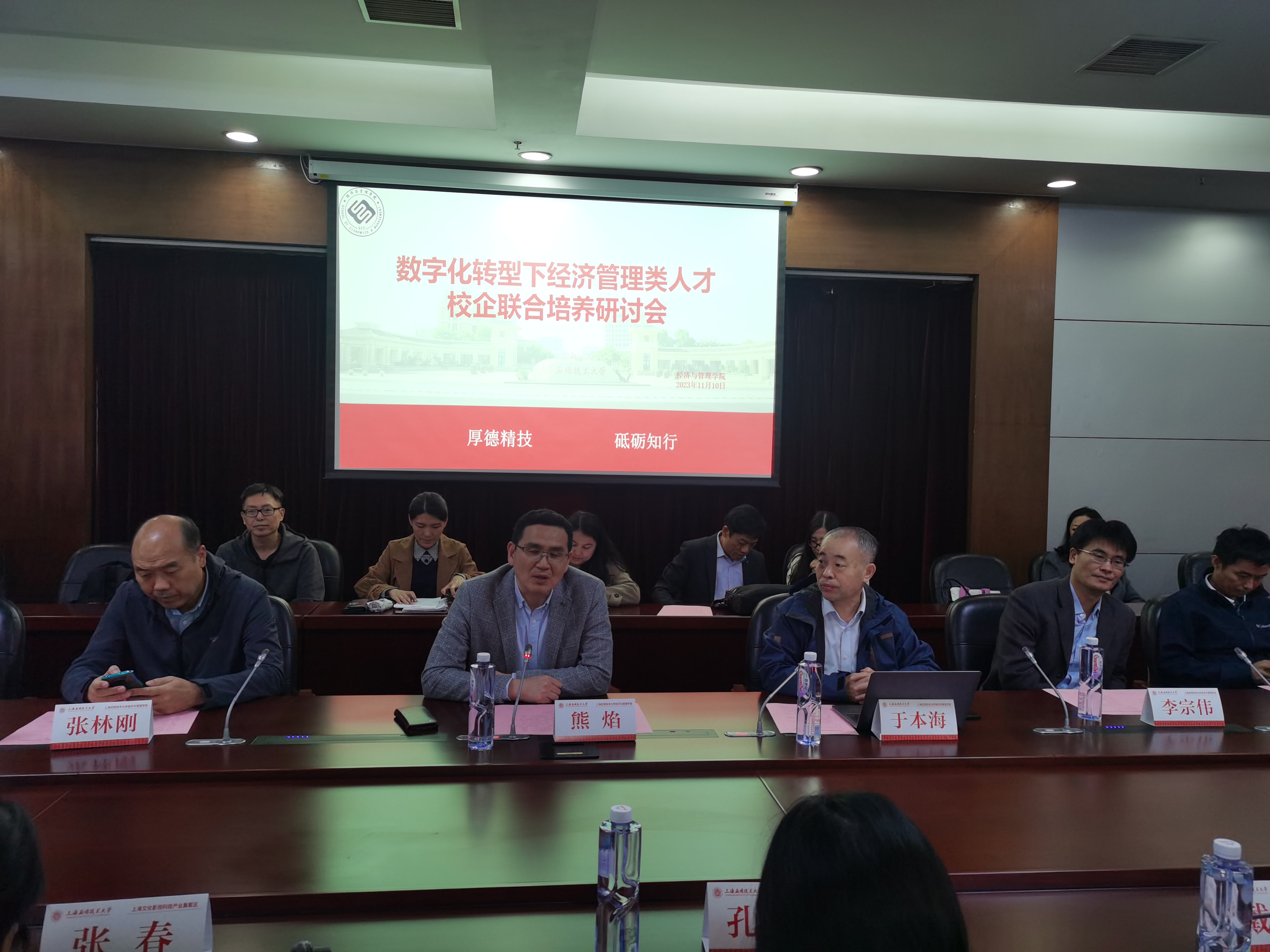 为进一步提升学院人才培养质量,加强校企合作交流,倾听用人单位对我院人才培养的意见和建议,11月10日,学院在徐汇校区图书馆117会议室举办“数字化转型下经济管理类人才校企联合培养研讨会暨2023年校企合作年终总结座谈会”。3003新葡官方网站院长熊焰,副院长于本海,毕业班辅导员,企业专家代表,各系主任、副主任及部分骨干专业老师参加研讨会。本次会议由于本海主持。