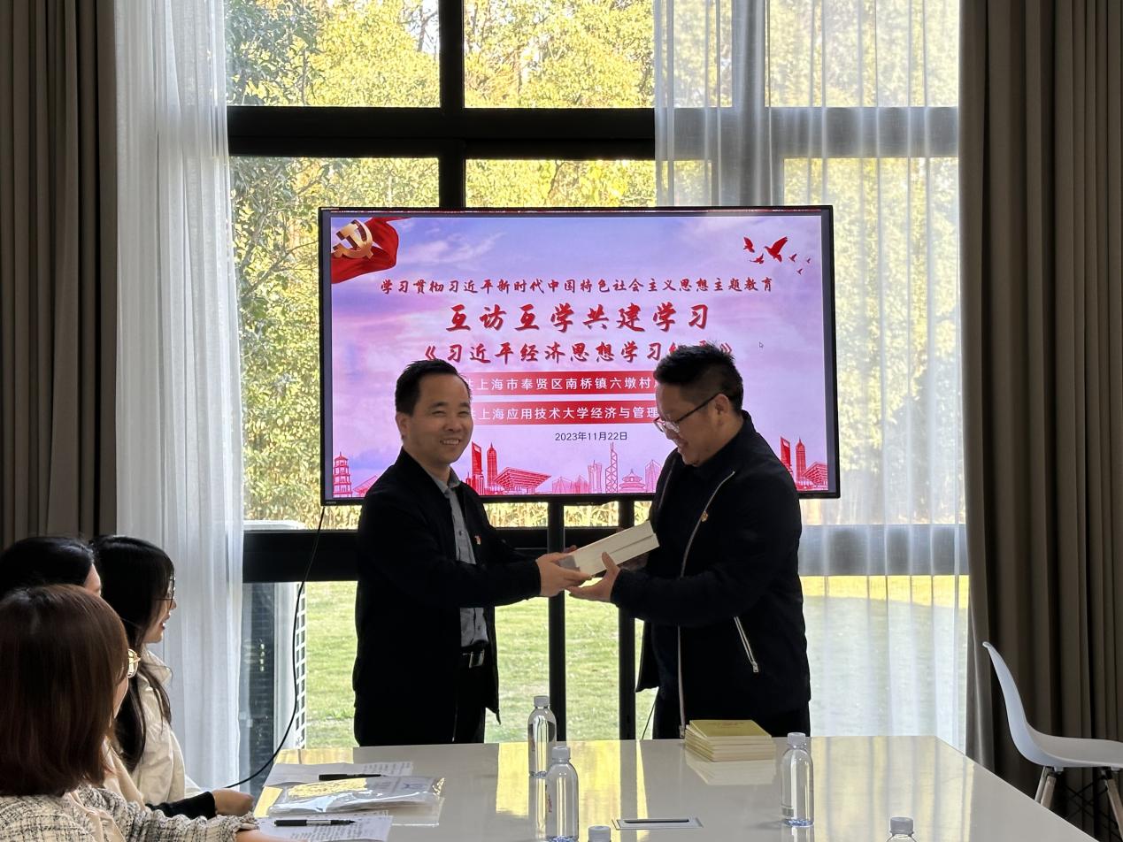 会上,双方党组织书记介绍了各自在党建工作方面的特点和资源,朱菁对前期的共建工作进行了总结,希望进一步深入推进合作。作为2023年上半年第一批主题教育开展单位,侯建生将学院在主题教育期间的所学所悟进行了分享,并赠送了《习近平经济思想学习纲要》。瞿东表示,目前村镇正在进行学习贯彻习近平新时代中国特色社会主义思想主题教育,上应大3003新葡官方网站对于习近平经济思想的学习既契合了学院的专业特色,也为村党总支开展主题教育工作提供了宝贵的经验,希望通过互访互学,让主题教育走深走实。