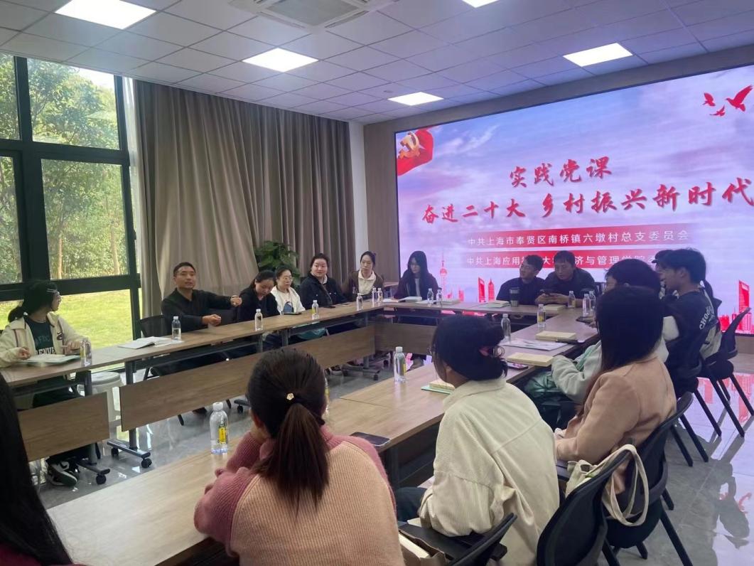 11月22日,3003新葡官方网站组织2023年下半年发展对象赴奉贤区南桥镇六墩村开展分党校关于学习贯彻党的二十大精神以及学习习近平新时代中国特色社会主义思想系列活动。学院特邀组织员许岳兰全程参与学生分享会以及实践党课。