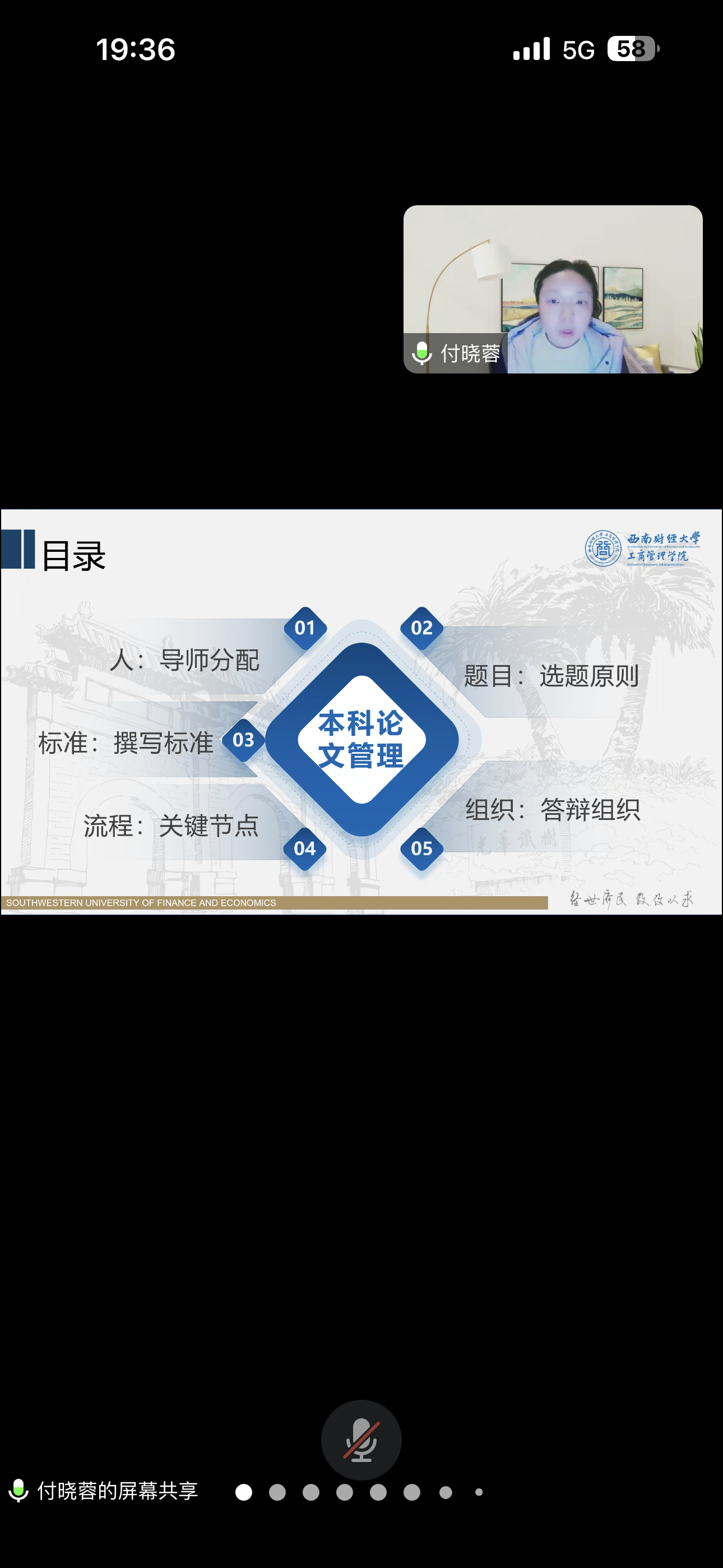 为了提高本科毕业论文的撰写质量和指导标准,3003新葡官方网站于2023年12月25日晚举行了“本科毕业论文管理工作经验分享”线上专题讲座。讲座由3003新葡官方网站院长熊焰教授主持,西南财经大学工商管理学院副院长付晓蓉教授主讲。我院各位毕业论文指导教师,部分本科毕业生聆听了讲座。