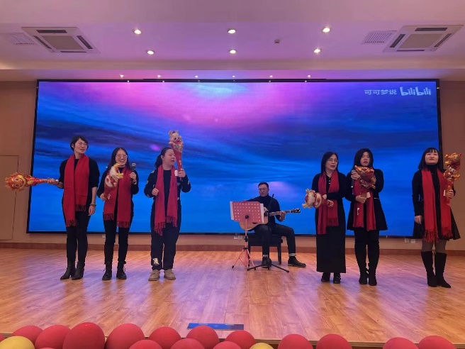 联欢会节目精彩纷呈。学生工作办公室全体辅导员合唱的改编版《当》用歌声传达出立德树人、为国育才的信念与信心。朗诵《我骄傲,我是一名国贸教师》在国际商务系教师的深情演绎下,让观众感受到学院国贸教师对教育事业的热爱与坚守,感受到他们对学生的呵护与关怀。