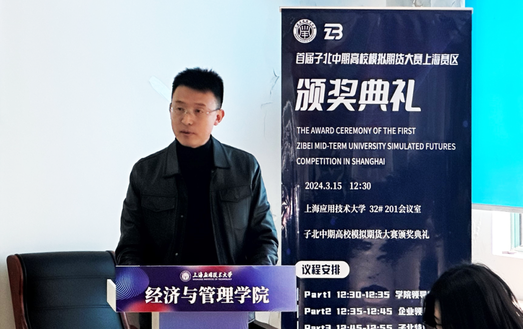 2024年3月15日,首届“子北中期杯”高校期货模拟大赛颁奖典礼在3003新葡官方网站徐汇校区举行。香港万宇资本总经理王震、上海子北科技有限公司总经理助理李婧祺、3003新葡官方网站党委副书记、副院长朱菁出席,相关获奖选手及参赛学生参加此次颁奖典礼。
