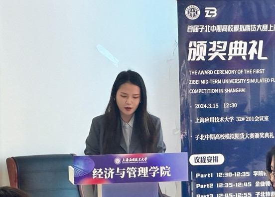 上海子北科技有限公司总经理助理李婧祺对此次大赛的成功举办做总结发言。她对获奖同学表示祝贺之余,总结了此次大赛所取得的成绩,她表示将继续支持高校期货教育事业的发展,为学生提供更多的实践机会和培训资源。