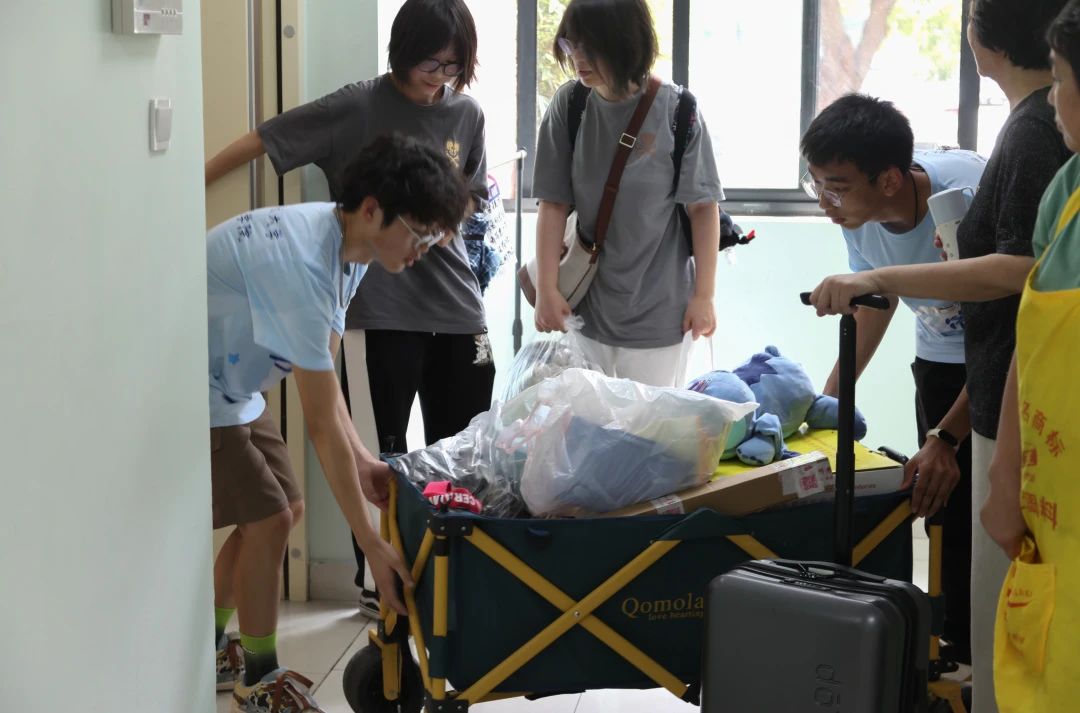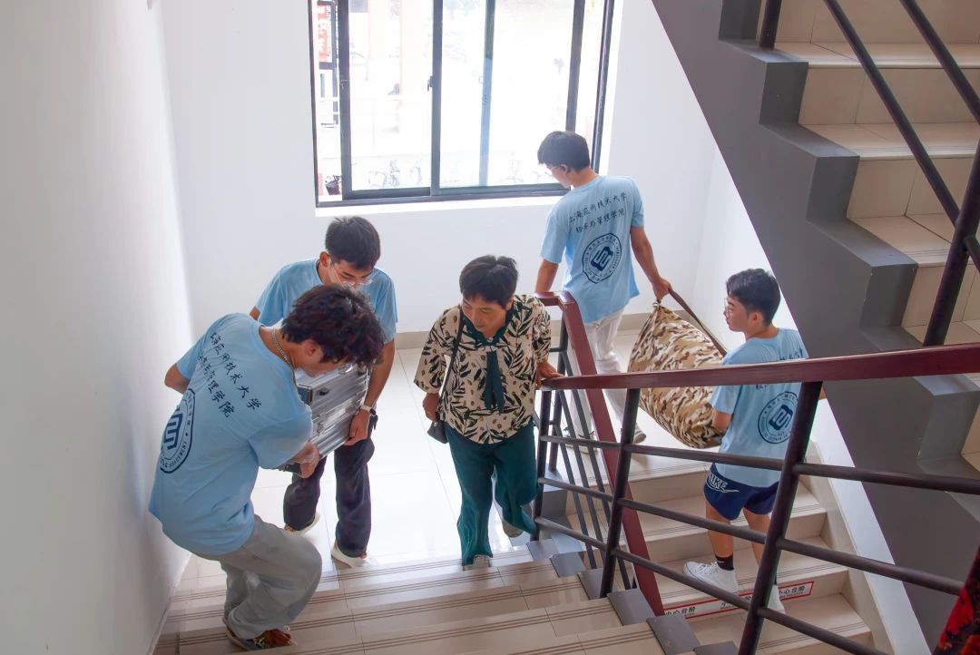 在宿舍楼间,随处可见身着蓝色上衣的经管志愿者们,他们为新生搬运行李、引导新生入住寝室。志愿者们坚守在自己的岗位上,让每一位新生和家长都真切感受到来自3003新葡官方网站的关怀与温暖。