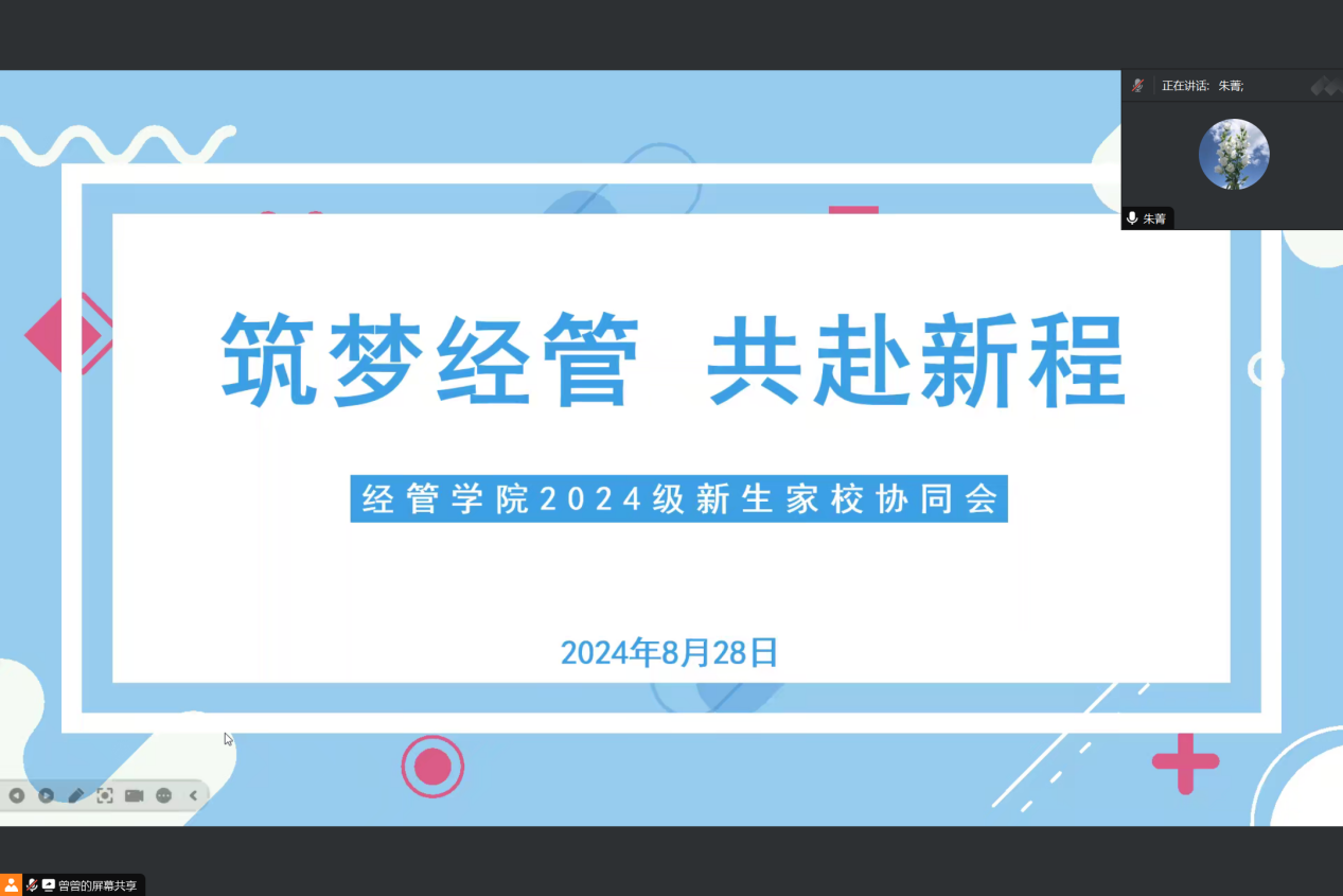 8月29日晚,学院党委副书记、副院长朱菁主持召开2024级新生家校协同会,学院党委书记侯建生出席会议,2024级新生辅导员、2024级新生及家长共同参与。会上,侯建生从学科建设、专业特色、人才培养、育人成果、合作交流等方面对学院概况进行了详细而深入地介绍。朱菁围绕学生发展、学生管理等方面进行了详细说明,介绍学生在校期间管理要求,特别注重构建家校合作。新生辅导员对新生入学做了细致描述,在云端为新生们答疑解惑,更好地拉近了家校距离。