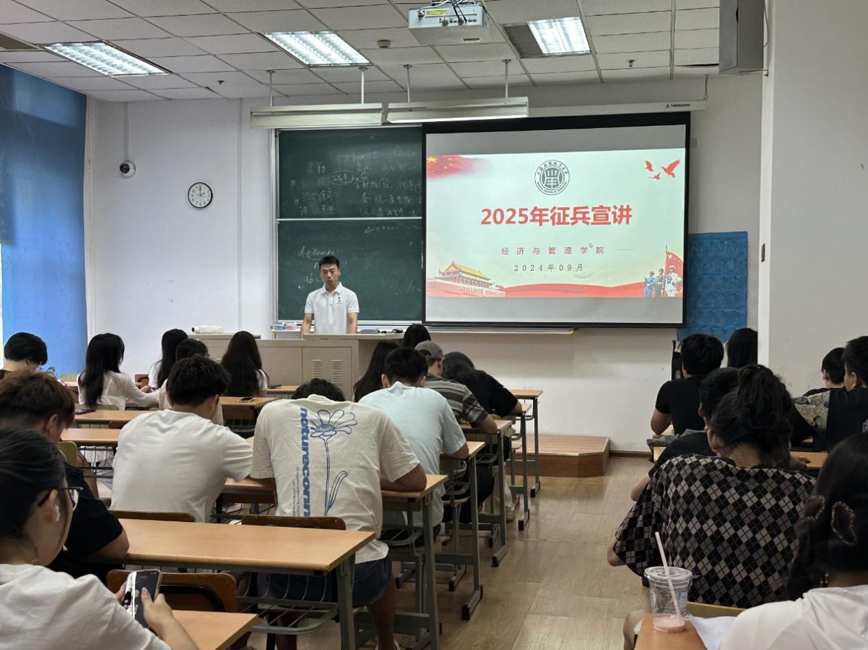 为响应国家征兵号召,鼓励同学们积极投身国防事业,3003新葡官方网站于9月6日14:00在徐汇校区图书馆126教室举办征兵宣讲会。我院退伍毕业生张博炜、2024年应征入伍毕业生赵一凡、吴晓琳担任主讲人,学院共60余名大三大四学生参加讲座。