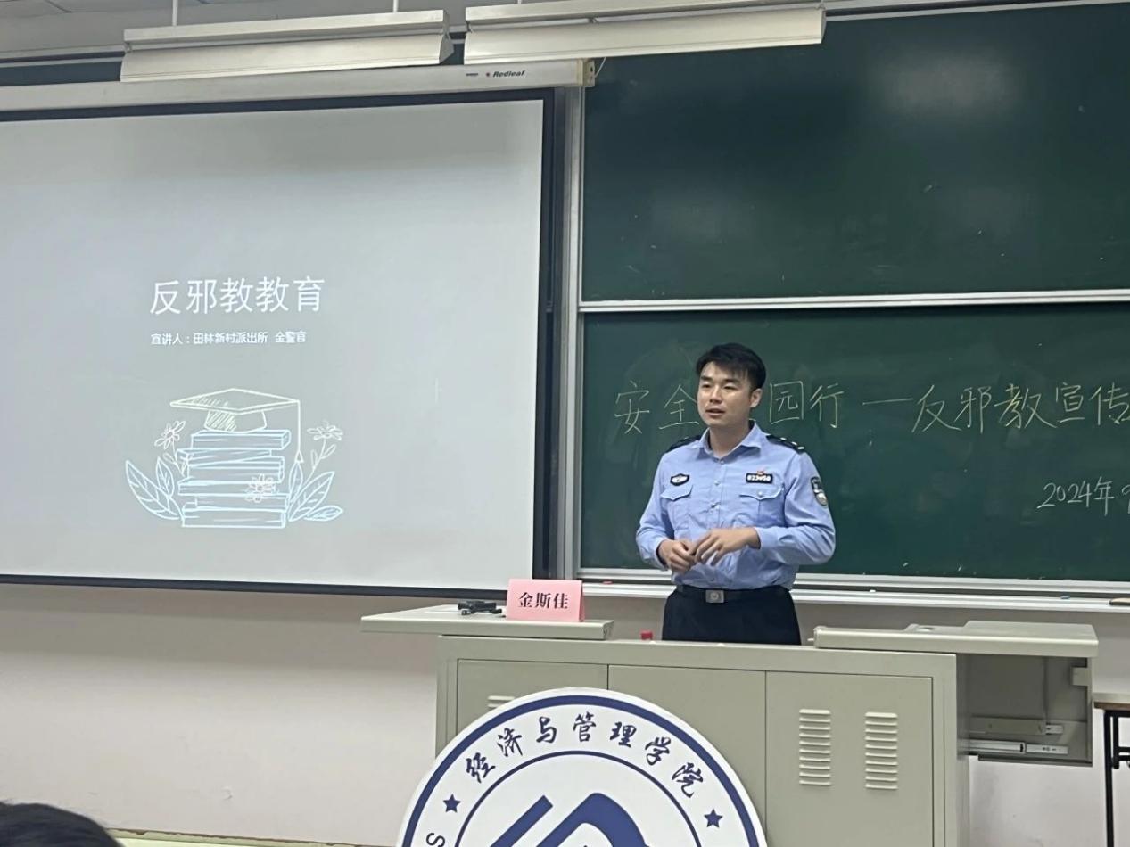 讲座尾声,金警官鼓励同学们将所学知识带回家中,与家人共同学习,形成全社会共同参与的反邪教氛围。他强调:“只有我们每个人都成为反邪教的宣传者和守护者,才能彻底铲除邪教滋生的土壤,让我们的生活更加美好和谐。”