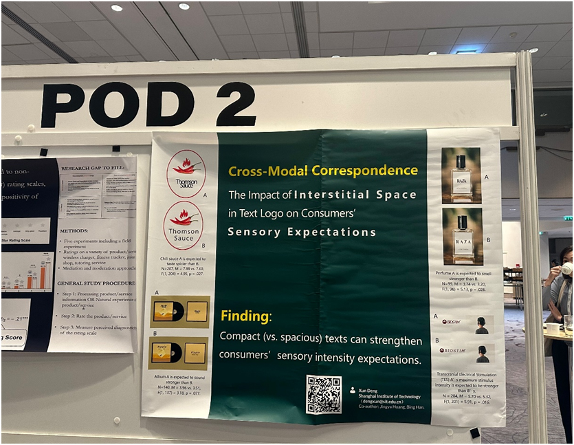 邓逊博士的论文“Cross-Modal Correspondence:The Impact of Interstitial Space in Text Logo on Consumers' Sensory Expectations”被大会接收。在交流互动期间,会场专对下一步研究发展和投稿方向提供了宝贵建议。通过在会议中聆听参会学者的热切讨论和建议,不仅拓展了研究的国际化视野,帮助中心成员进一步把握国际前沿性的研究动态和发展趋势,也加强了校际交流,提升了我院市场营销专业的关注度和与国际优秀学者的合作机会。