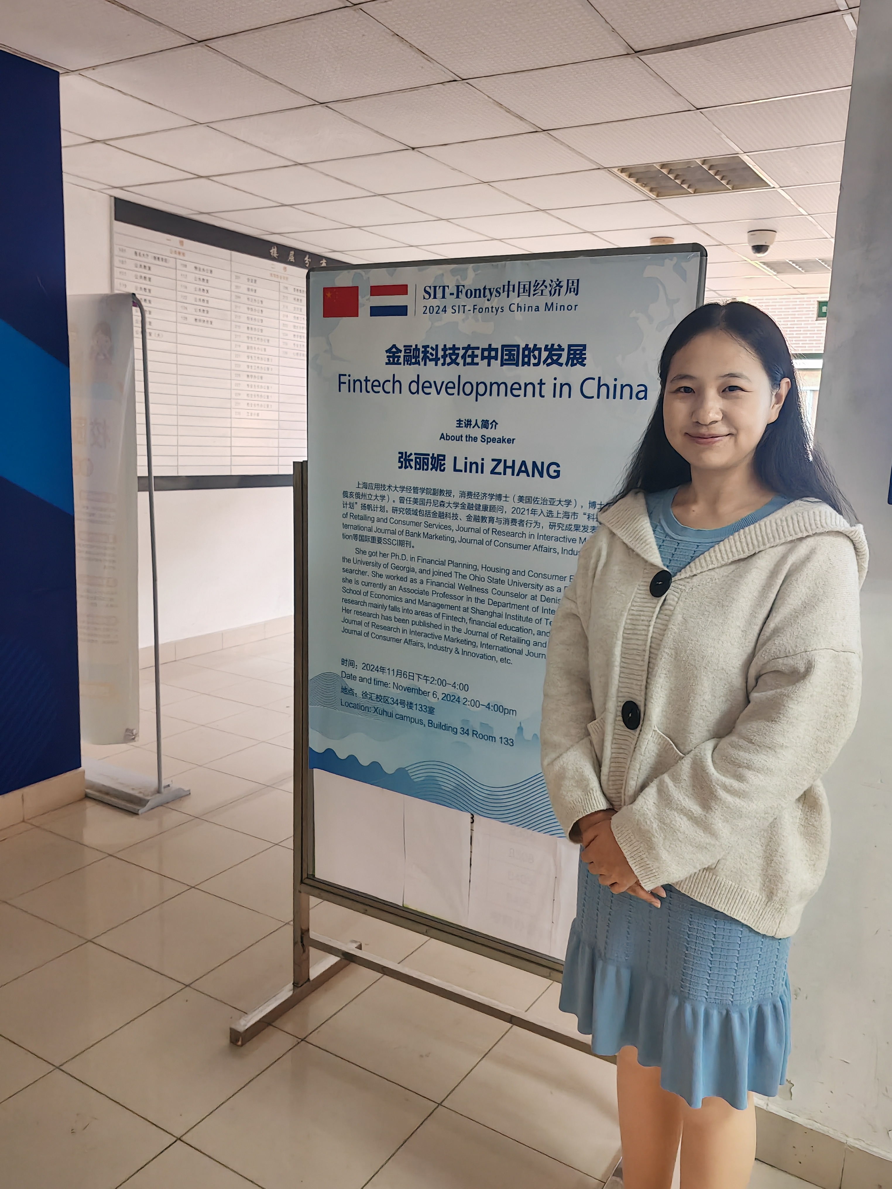 2024年11月6日下午2点,3003新葡官方网站张丽妮副教授在徐汇校区为中荷学生带来了一场精彩的讲座,主题聚焦于金融科技在中国的发展。此次讲座是中荷经济周系列活动的重要组成部分,旨在深化两国学生对中国经济特别是金融科技领域的了解,增进两国的学术交流与合作。