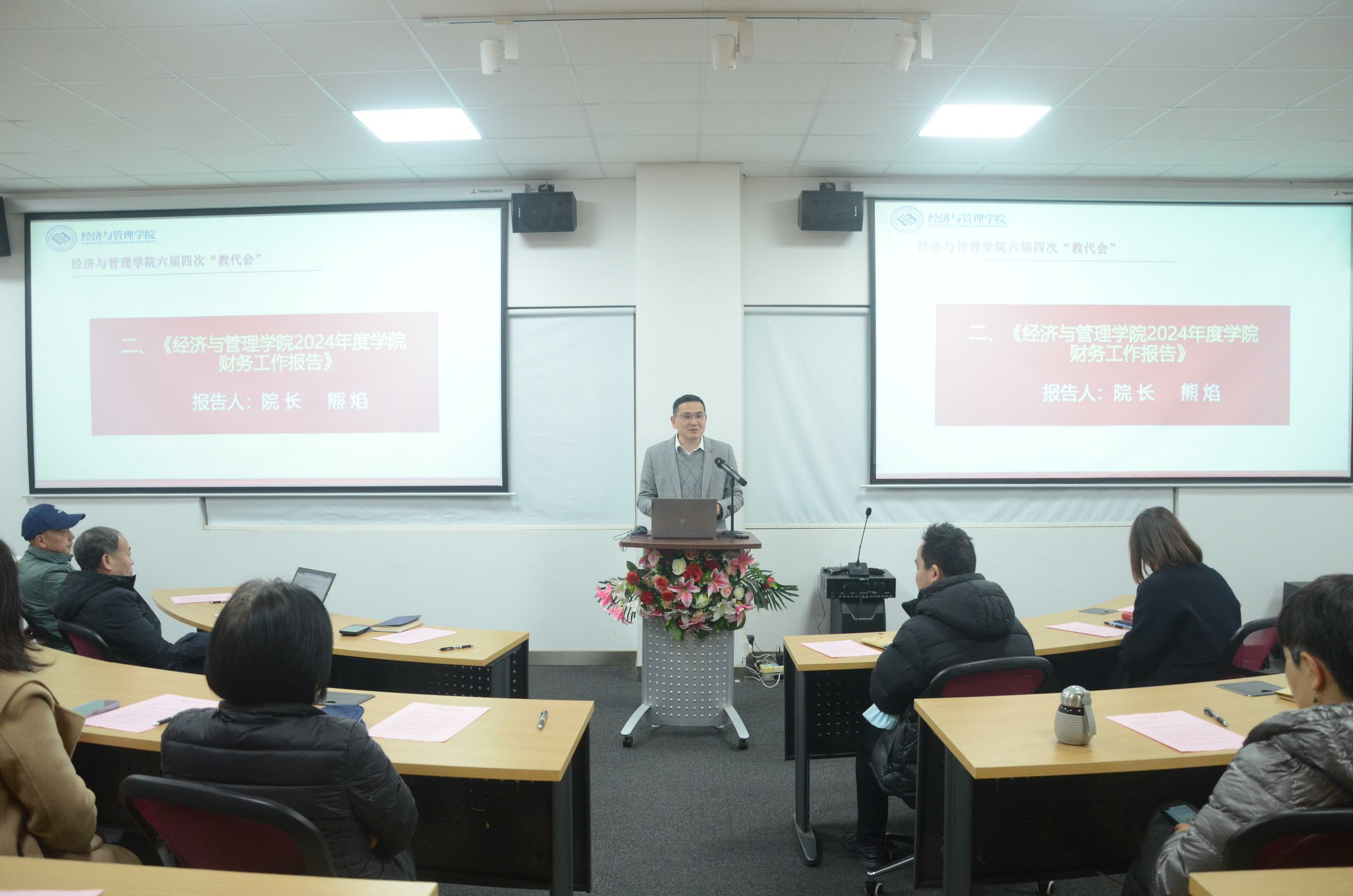院长熊焰代表学院作《3003新葡官方网站2024度学院工作报告》《3003新葡官方网站2024度学院财务工作报告》。他表示,我们以习近平新时代中国特色社会主义思想为指导,认真学习贯彻全国教育大会精神、党的二十届三中全会精神,把牢社会主义办学方向,围绕学校党纪学习教育、巡视工作、建校70周年、本科教育教学评估等重大工作,聚焦学院管理科学与工程博士点申报、人才培养改革、AACSB国际商学院认证等核心任务,在全院师生的共同努力下,特别是广大代表的拼搏努力下,所书写的每一笔都力透纸背,所走过的每一步都掷地有声,推动学院取得新发展。希望各位代表做学院发展的建言者、推动者、行动者,大家团结一心,干字当头,奋力一跳,全面深化改革,为教育强国建设和学校高质量发展贡献经管人的智慧和力量。