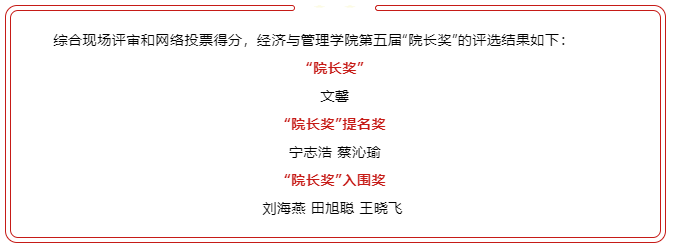 本次“院长奖”评选采用了“自主申报+组织推荐”的方式,确保了评选过程的广泛参与性和公正性。经过初评审核,最终六名候选人进入终评环节,他们分别是:2023级研究生王晓飞,2021级本科生宁志浩、田旭聪、文馨,2022级本科生蔡沁瑜、刘海燕。